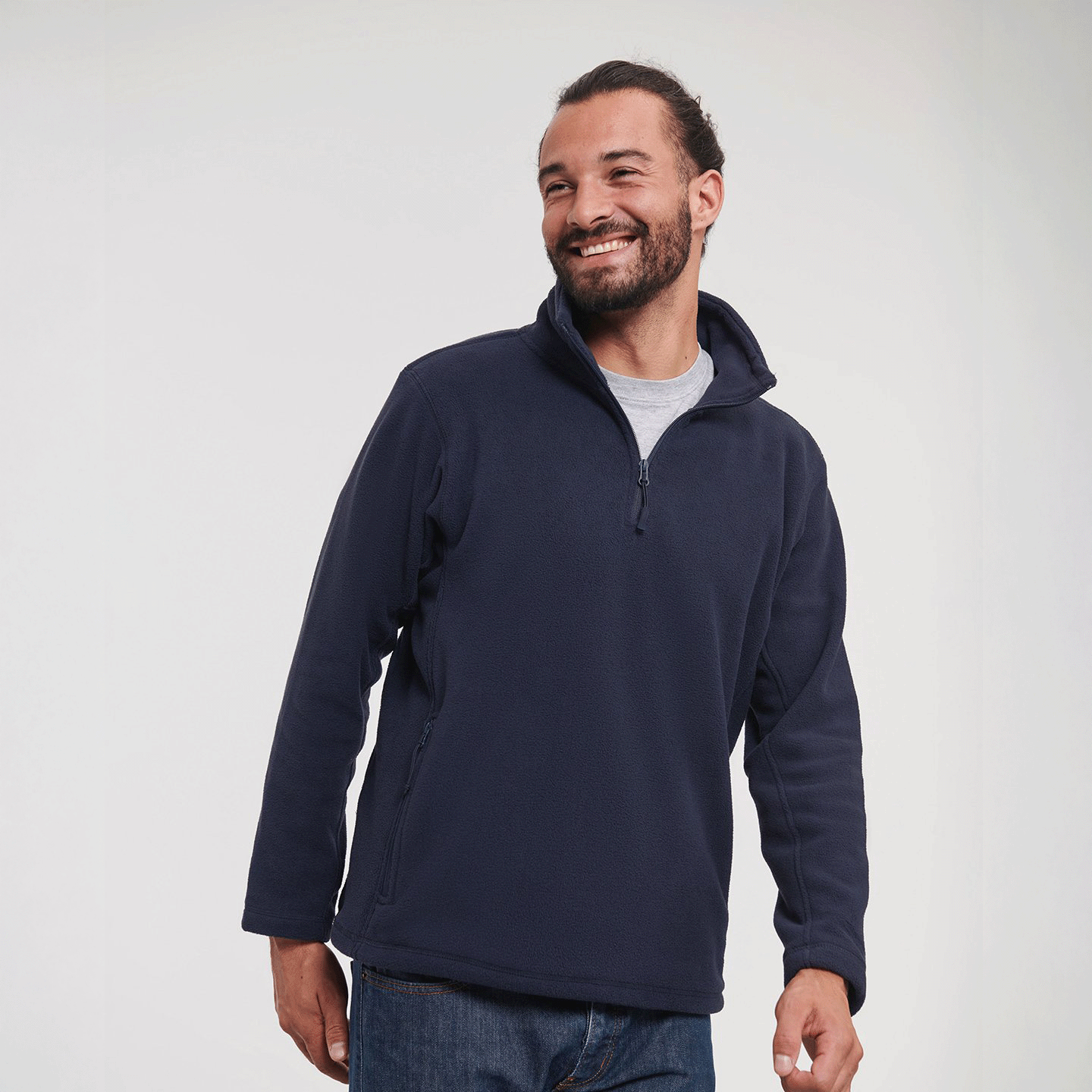 The compact fleece material, the smooth surface and the panelled construction allow for excellent fit and a more modern look than fleeces generally do. Cadet collar. 1/4 zip. Side pockets with reversed zips and inner mesh lining. Cord pulls on all zips. Bungee cord in hem.
